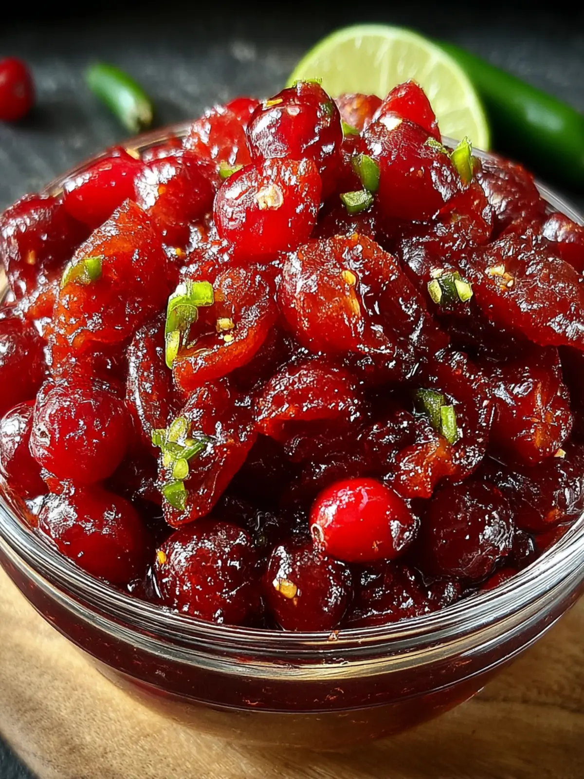 A sweet and spicy relish made with fresh cranberries and jalapeños.