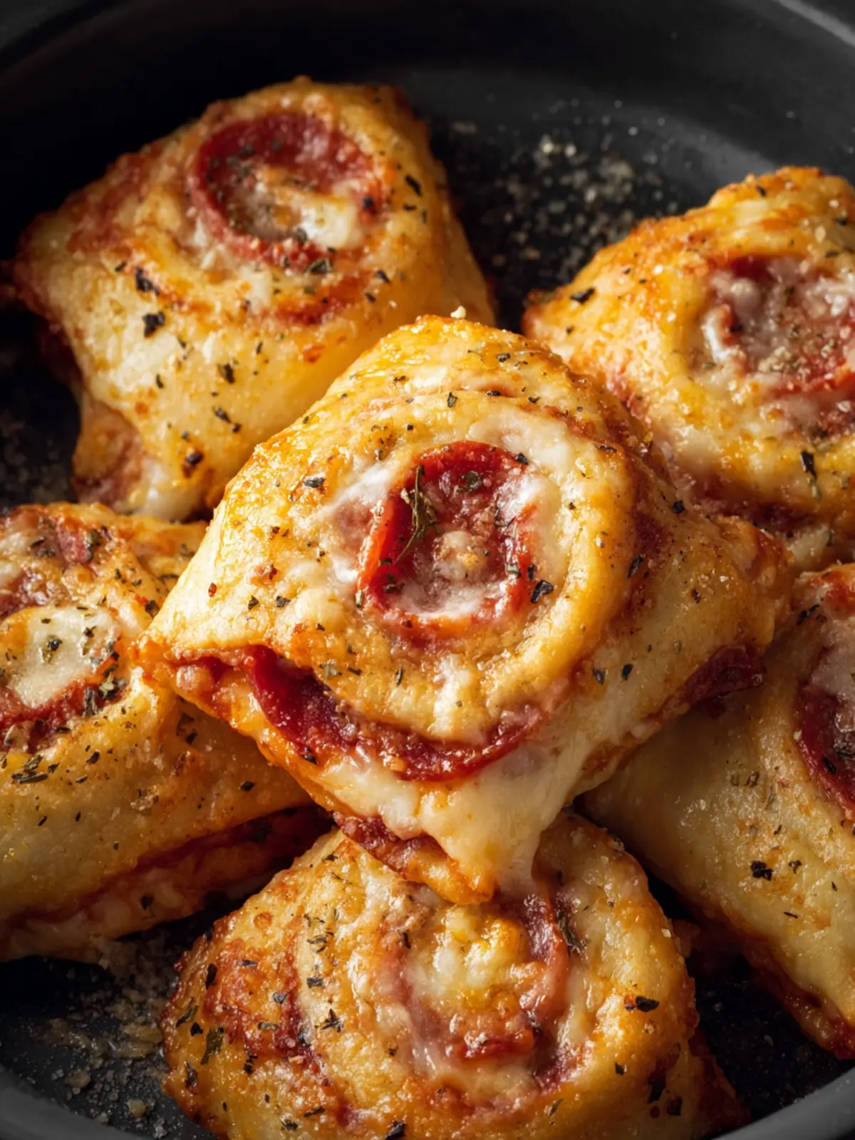 Delicious homemade pizza rolls filled with cheese and pepperoni, perfect for an easy snack.
