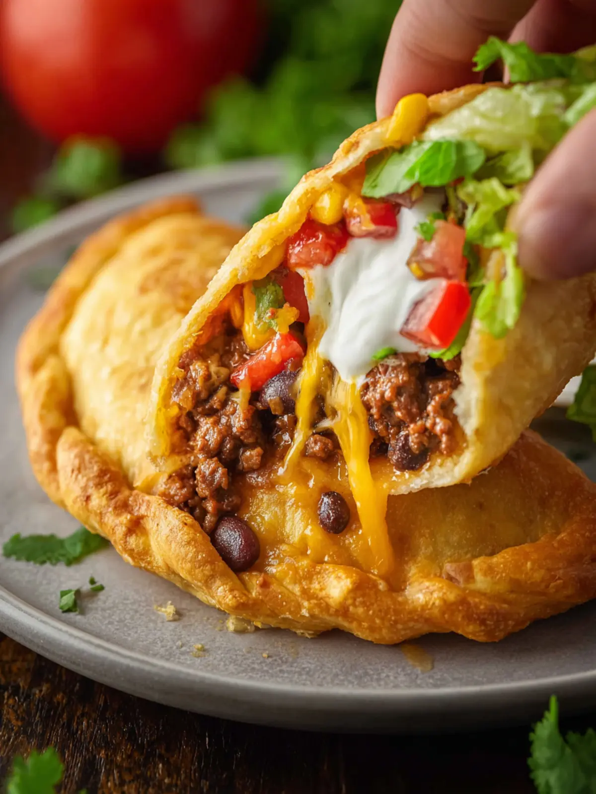 Delicious homemade taco pockets filled with seasoned beef, beans, and cheese, perfect for an air fryer meal.