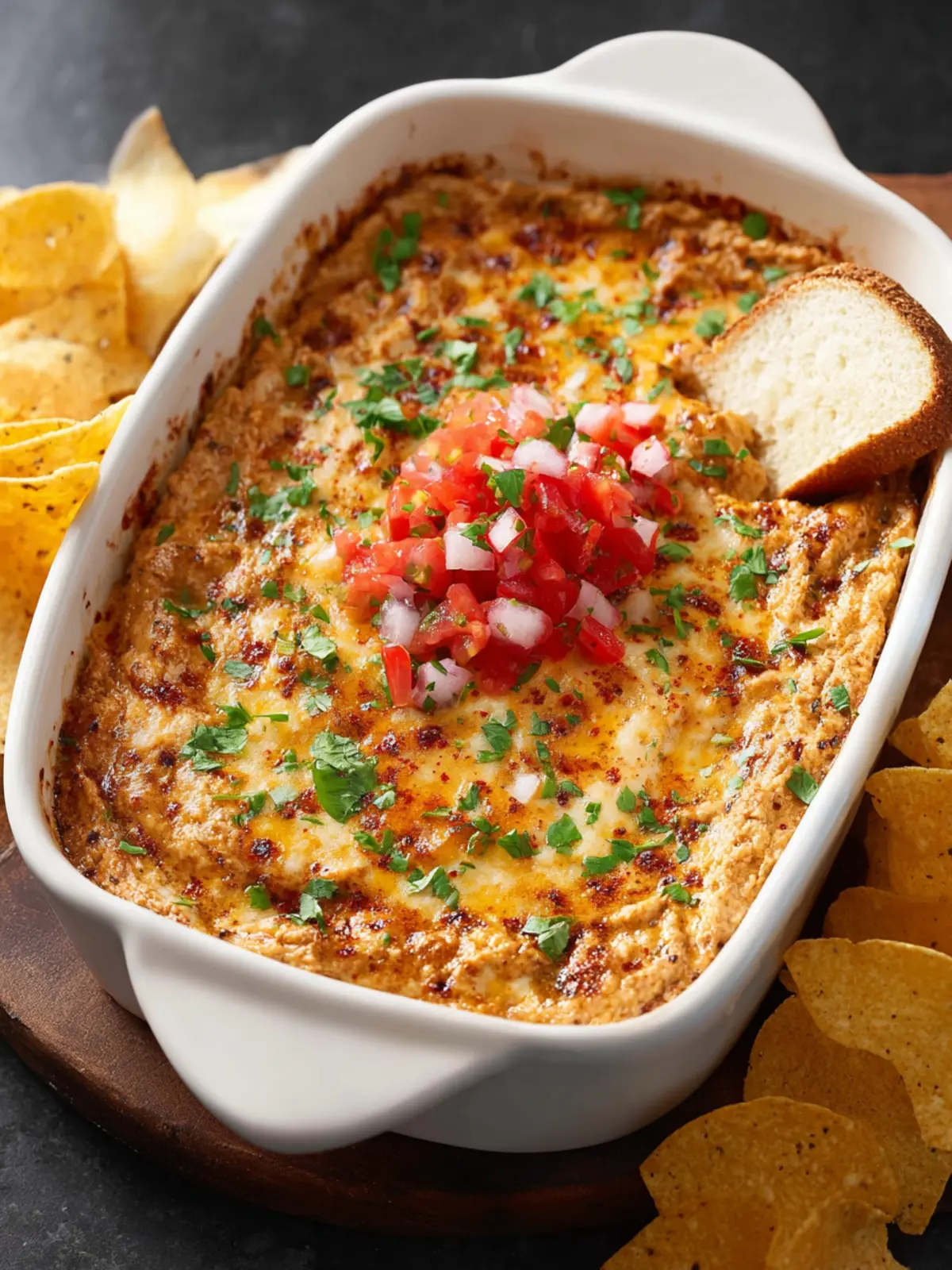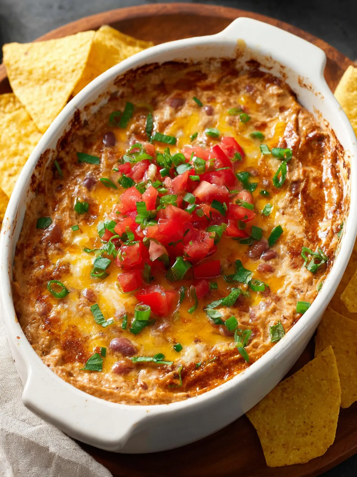 Fresh Toppings: Don’t forget the finishing touches! Fresh cilantro, sliced green onions, diced jalapeños, and chopped tomatoes brighten up the dip and make it look as good as it tastes, complementing the creamy base perfectly.