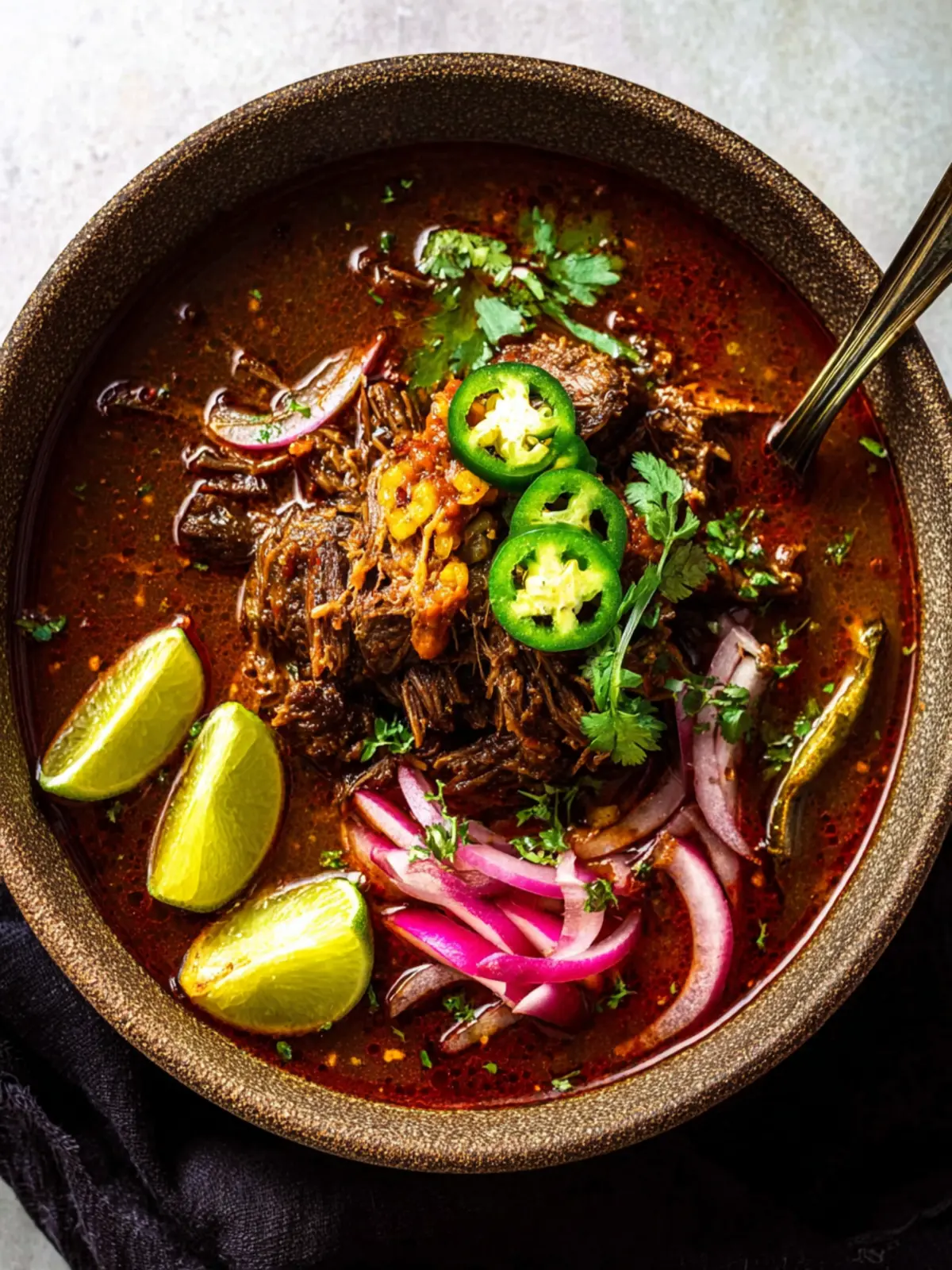 After cooking, strain the broth to remove any solids. This results in a smooth, flavorful sauce that can be used for dipping or served alongside your beef birria.