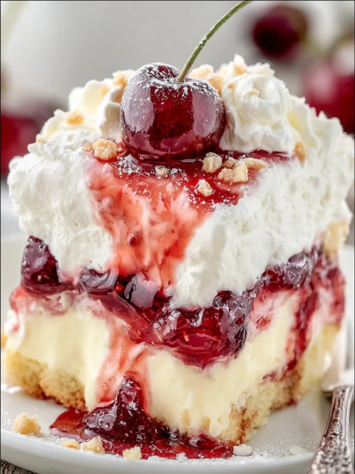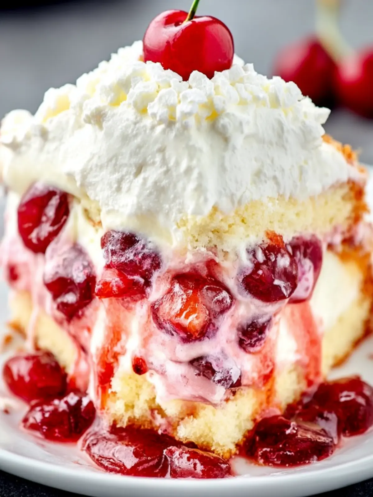 Imagine a slice of cherry cream layered cake adorned with bright red cherries peeking through fluffy layers of cloud-like cream. This delightful dessert not only satisfies your sweet tooth but also captivates your senses with its rich texture and refreshing flavors. When you take a bite, the creamy layers blend perfectly with the sweet yet slightly tart cherries, creating a symphony of taste that dances on your palate. As someone who has turned countless gatherings into celebrations with this cake, I can attest to its ability to brighten any occasion.