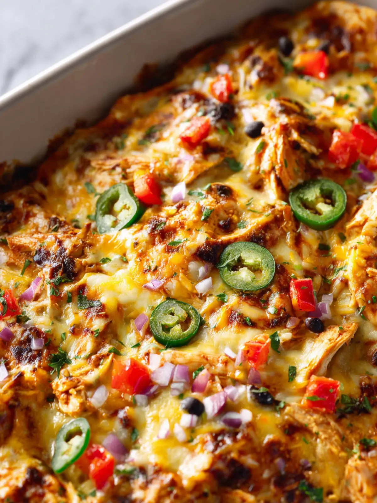 • Add Jalapeños: Diced fresh jalapeños mixed in with the chicken or sprinkled on top before baking will definitely give it a kick.