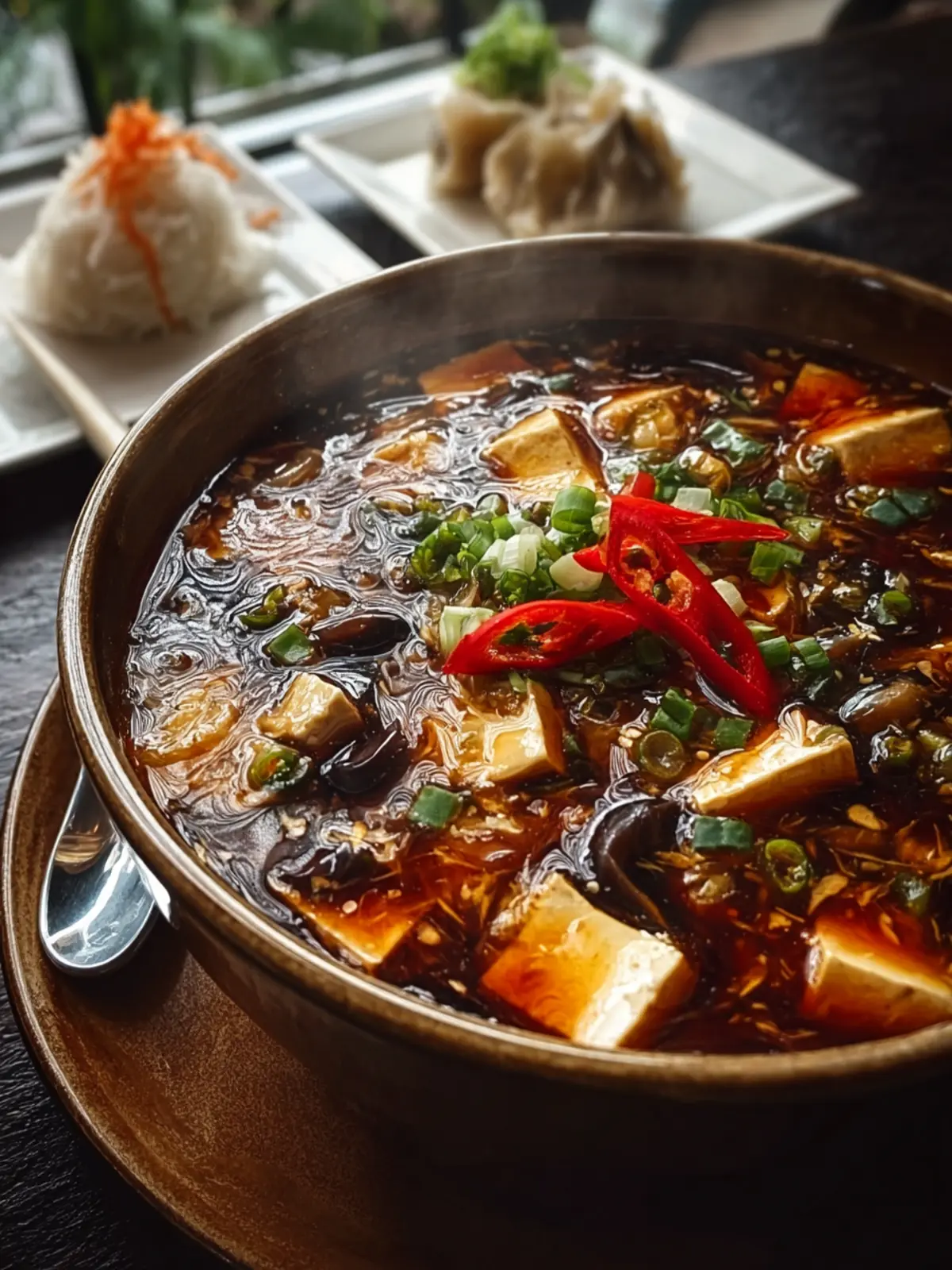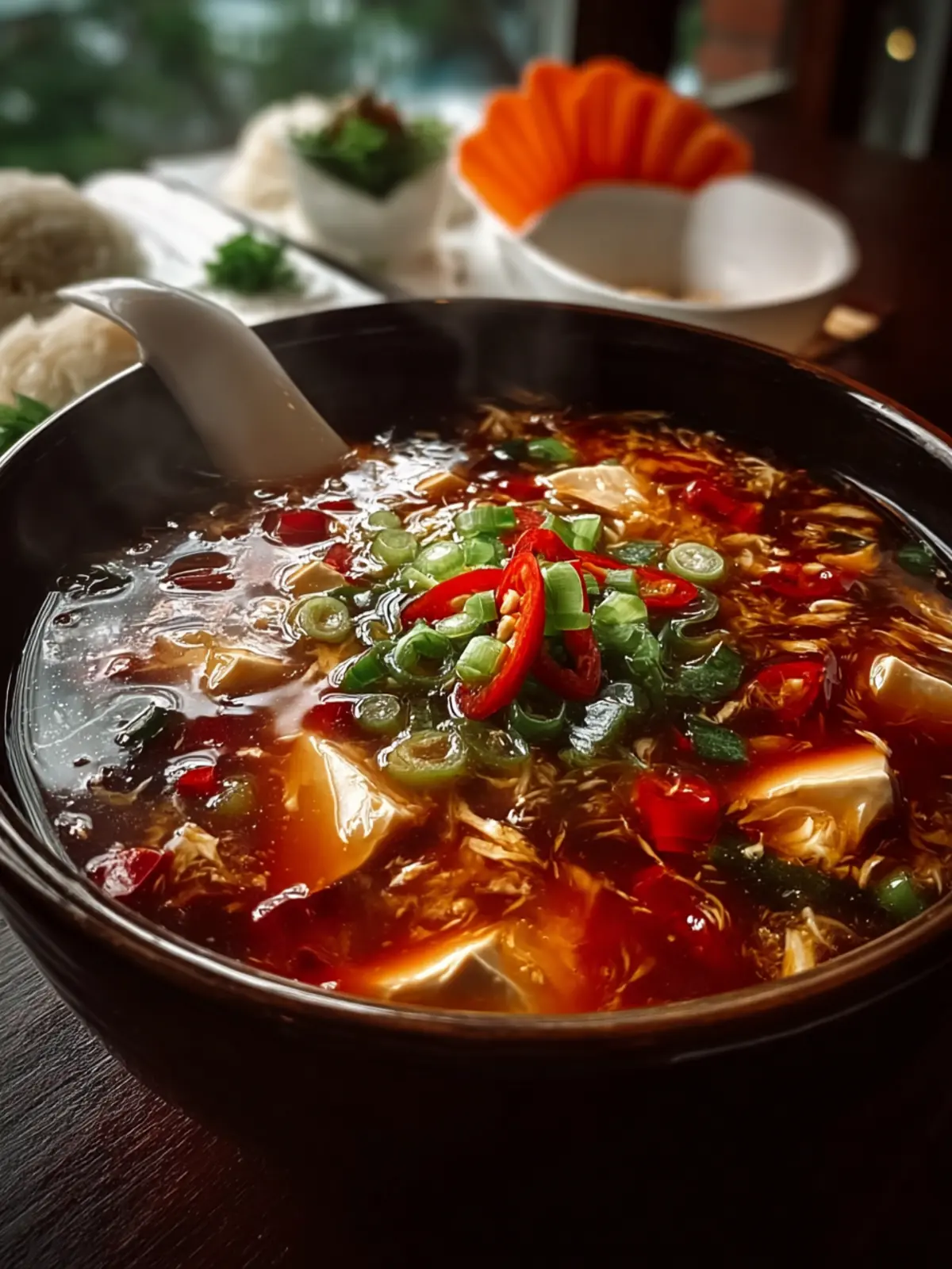 This soup combines the zest of white pepper, the earthy depth of shiitake mushrooms, and the bright acidity of rice vinegar. As the spices mingle, they create a tapestry of flavors that elevate this dish from ordinary to extraordinary.