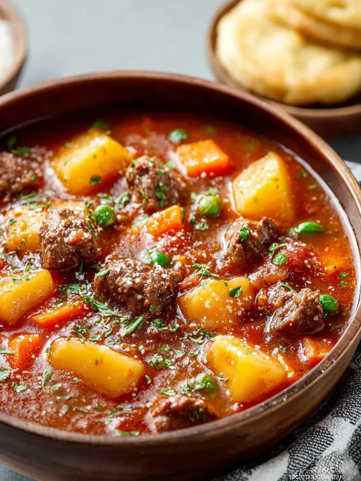 A hearty beef and vegetable stew, perfect for a comforting meal.