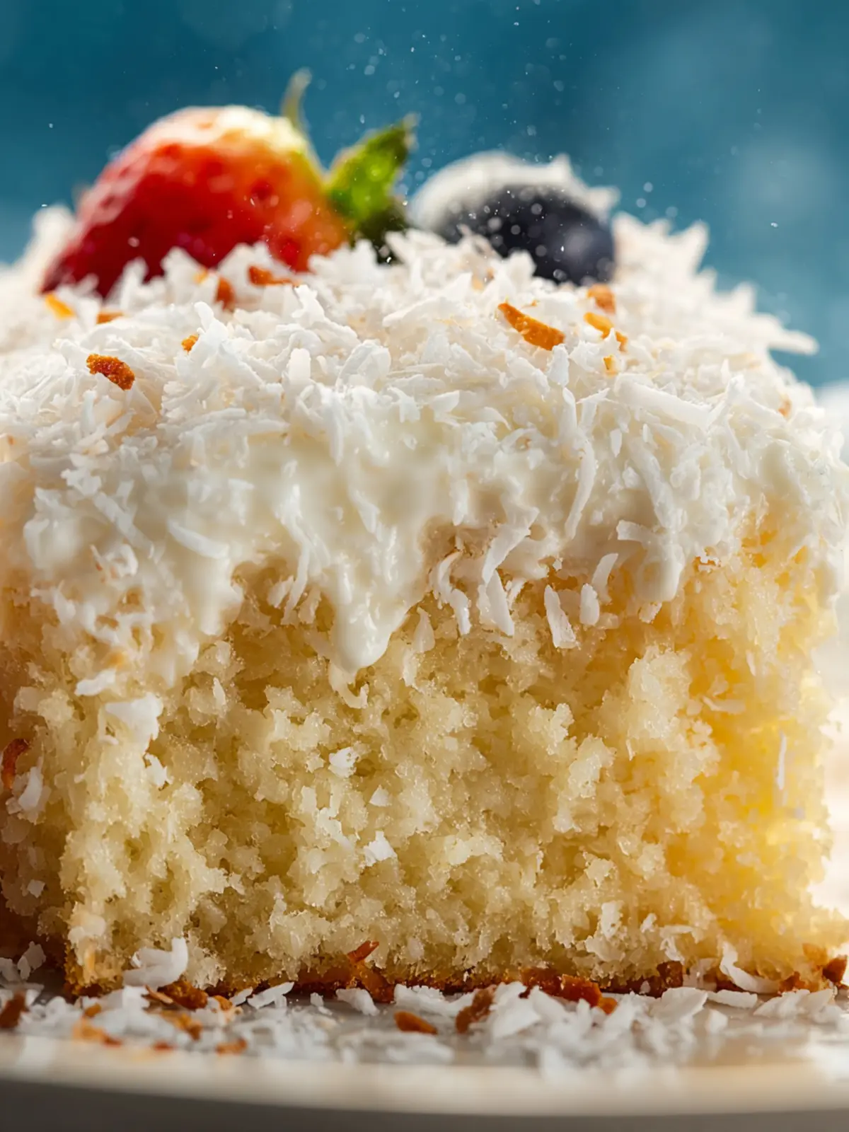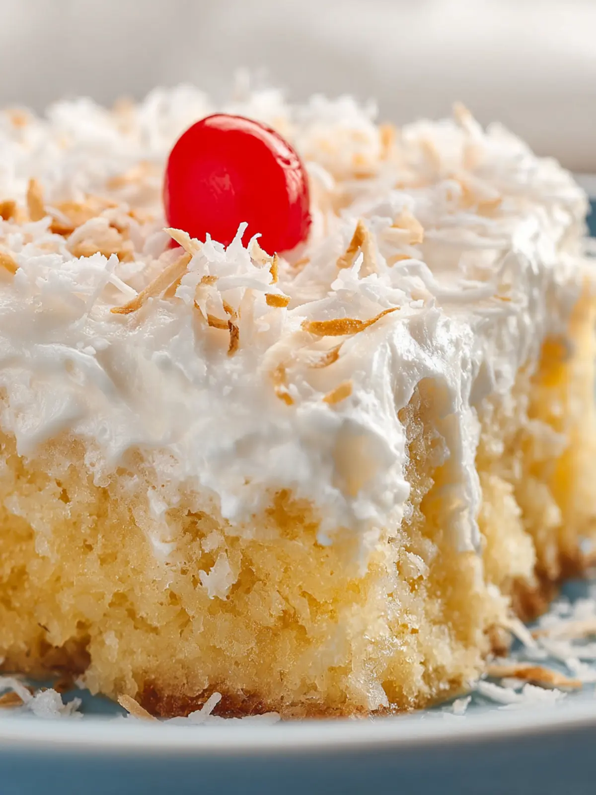 Sweetened Coconut Flakes: Finally, sprinkle sweetened coconut flakes on top for a finishing touch. They add texture and enhance the coconut flavor, making this cake a festive centerpiece for any gathering.