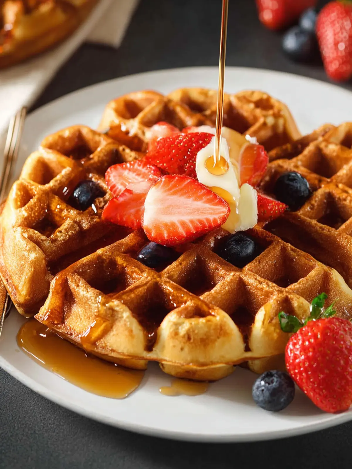Fruit: Add fresh berries, chopped bananas, or apple slices directly into the batter for a sweet burst of flavor. This not only makes the waffles visually appealing but also enhances their taste.