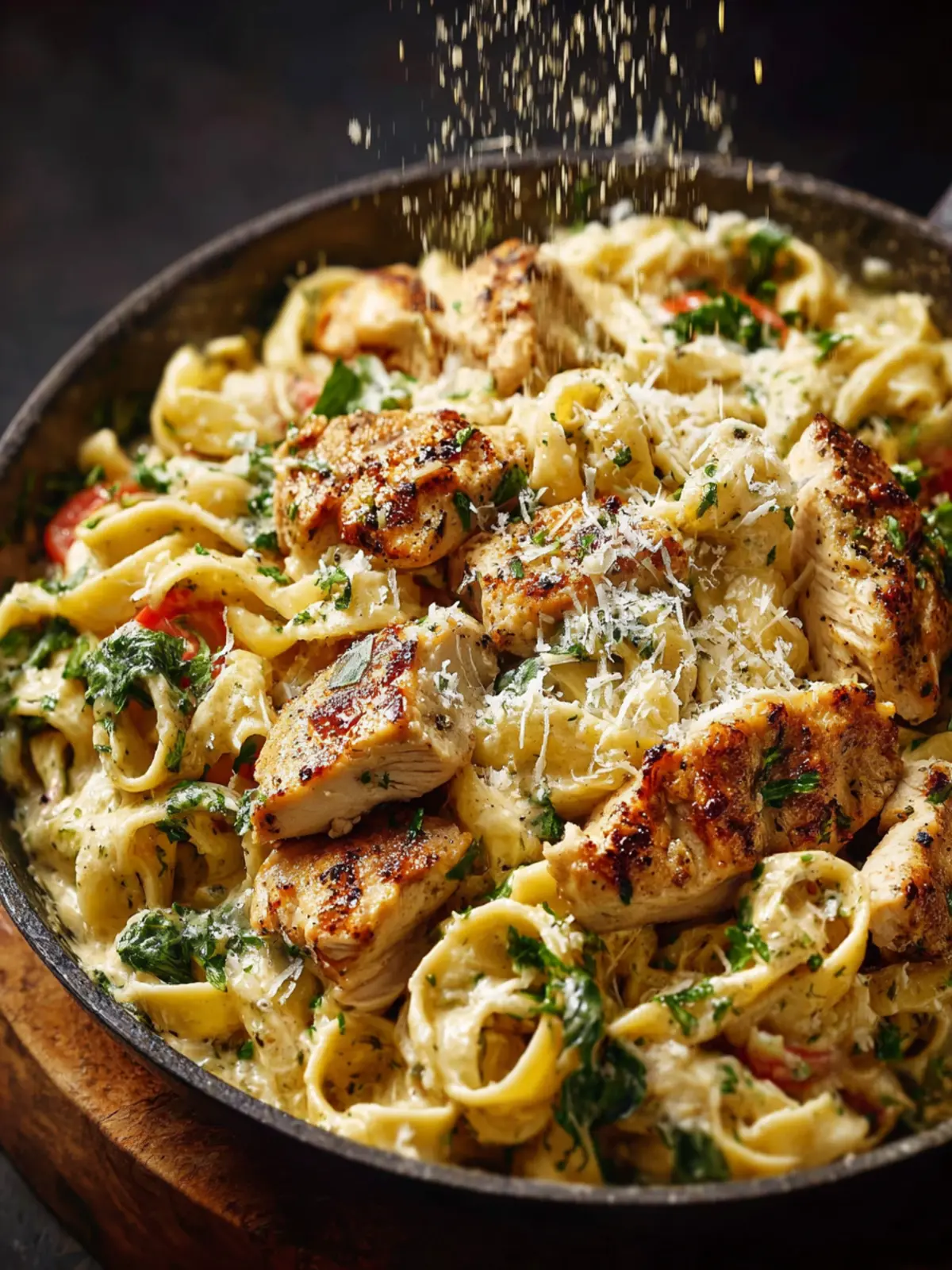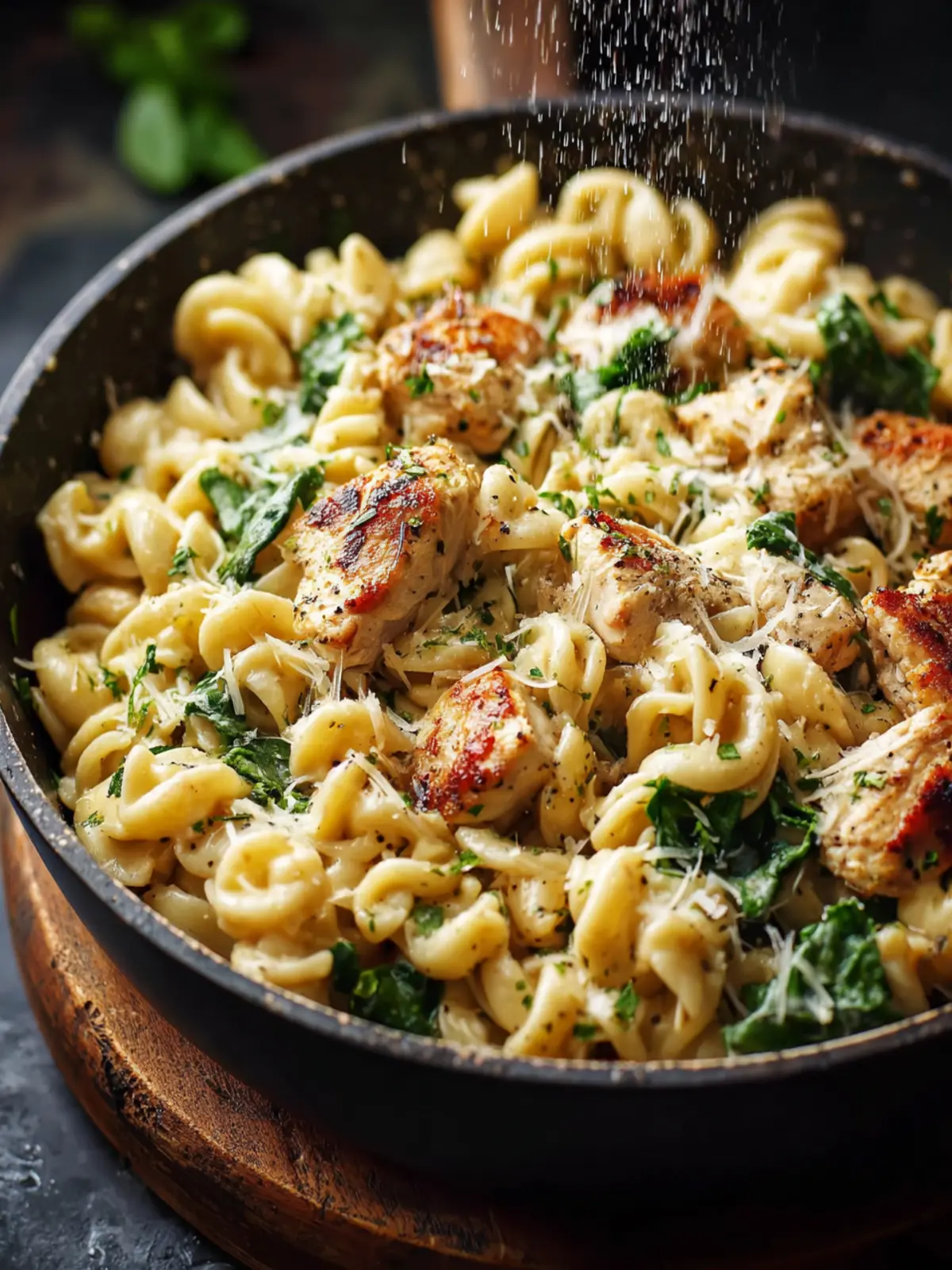 Once you’ve prepped, the cooking process will take roughly 20 minutes. This includes sautéing the chicken, cooking the pasta, and tossing everything together with that rich garlic and Parmesan goodness.