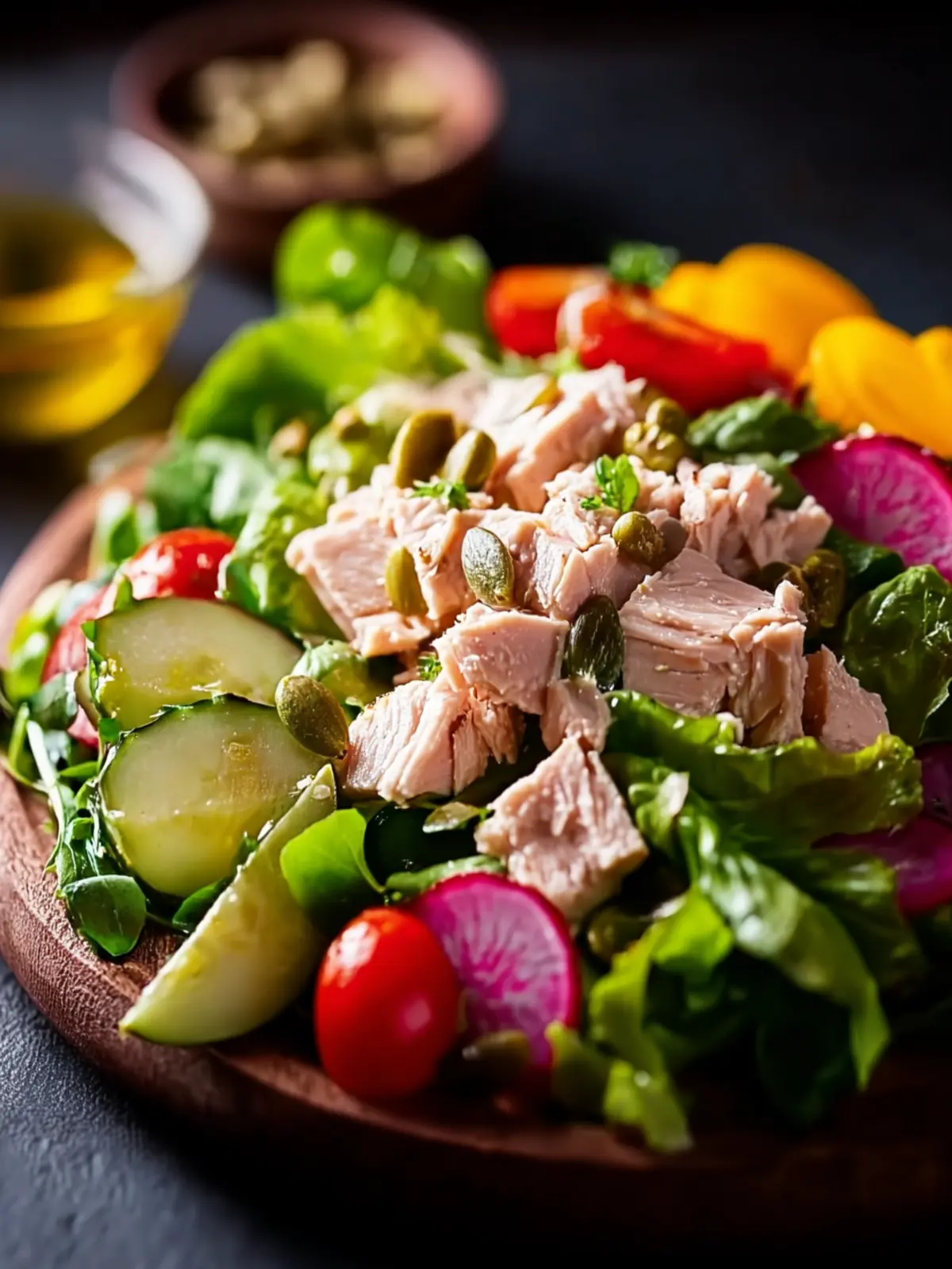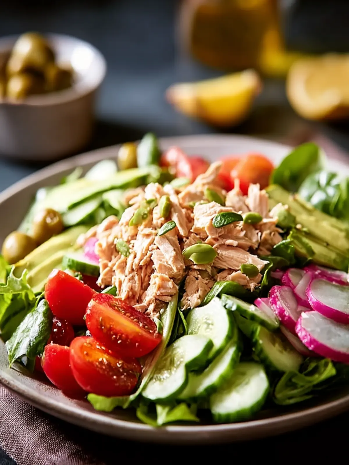 What sets this dish apart is its impressive protein content, boasting about 30 grams per serving! The tuna is a powerhouse in this regard, helping highlight the salad as a great muscle-repairing meal.