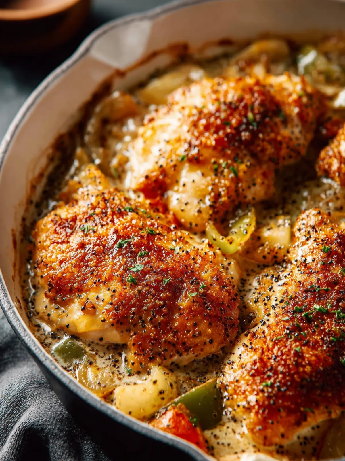- Pour the sauce over the chicken, ensuring even coverage.