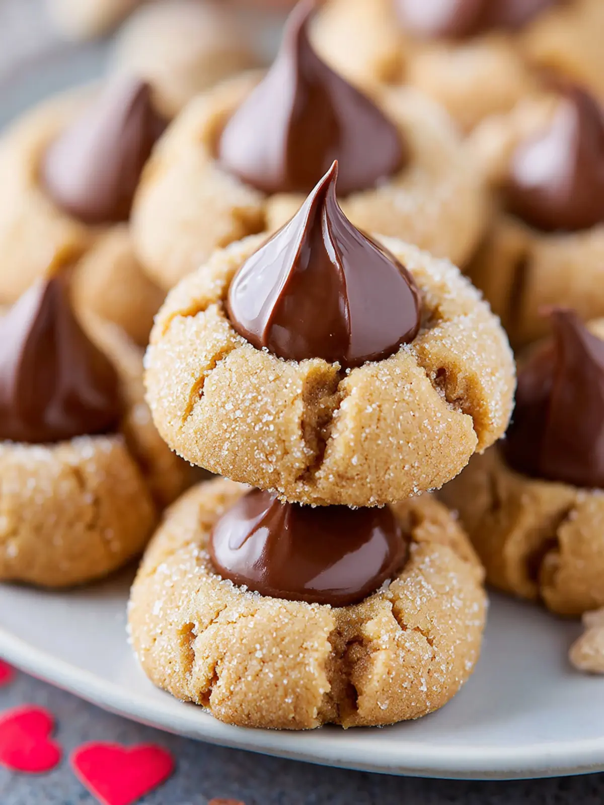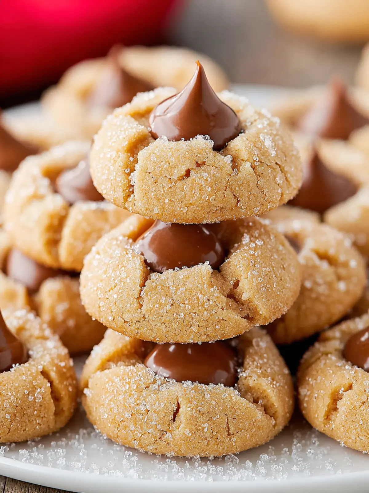 Hershey’s Kisses: Topping each cookie with an iconic Hershey’s Kiss adds the perfect chocolatey finishing touch, creating the delightful contrast that elevates these Peanut Butter Blossoms.