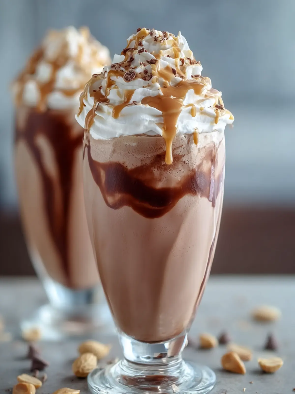 A deliciously rich and creamy milkshake that combines chocolate and peanut butter for a delightful treat.