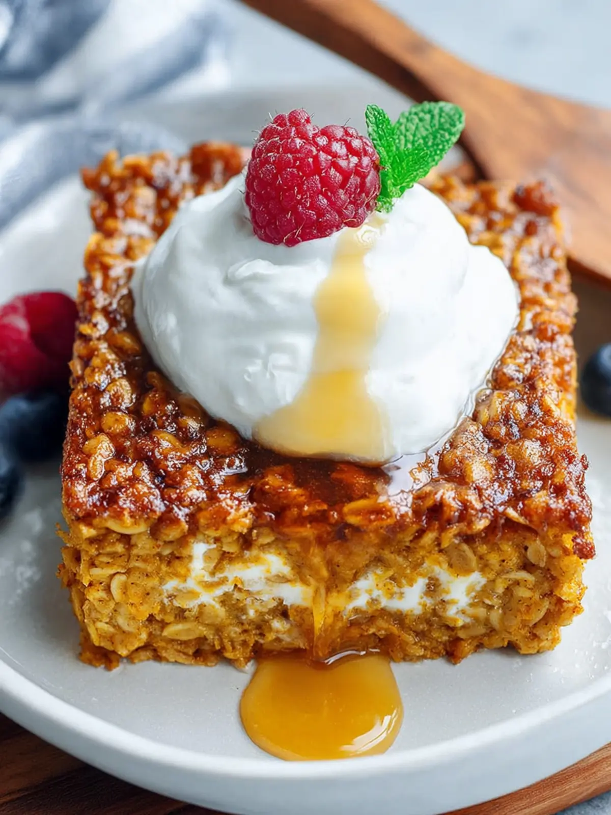 A delicious pumpkin oat bake perfect for breakfast or dessert, loaded with nutritious ingredients.