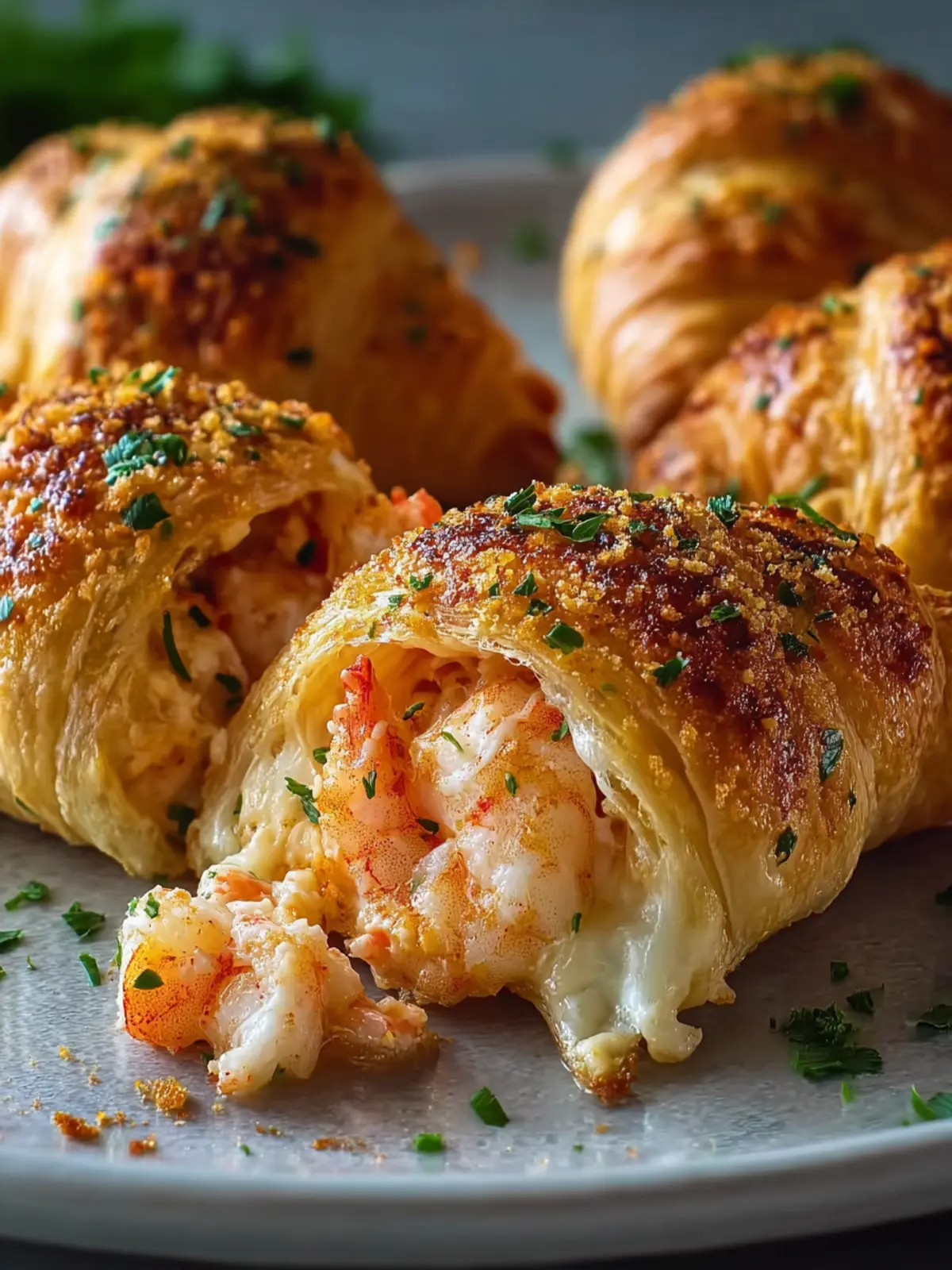 Delicious shrimp and crab-filled crescent roll bombs, perfect as an appetizer or snack.