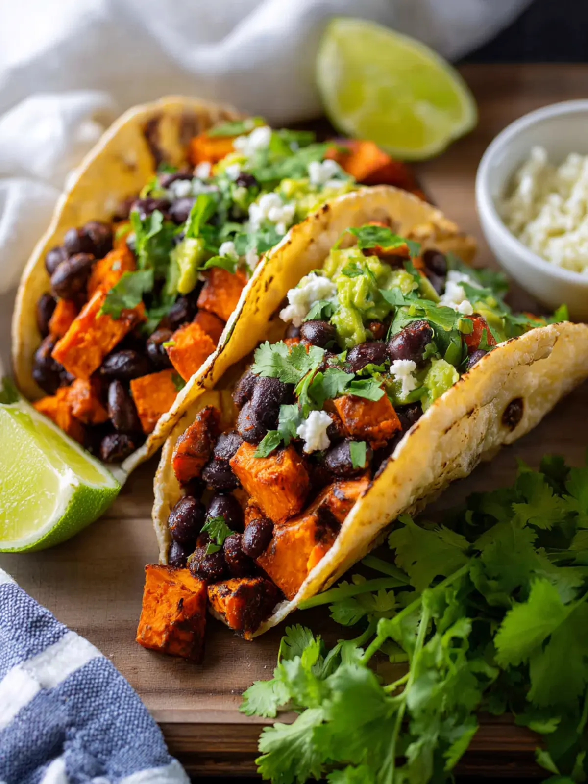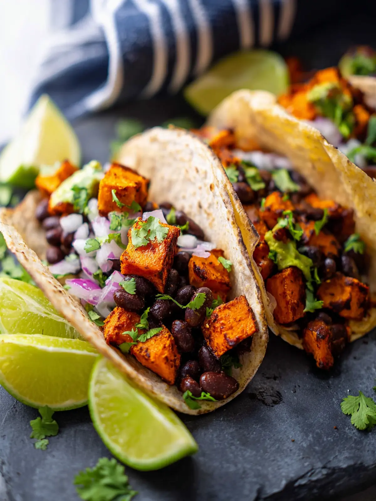 Don’t skimp on the toppings! Fresh cilantro, diced avocados, and a zesty lime wedge can take your sweet potato and black bean tacos from tasty to exceptional. You might even want to drizzle some yogurt or a tangy salsa for that extra flavor kick.