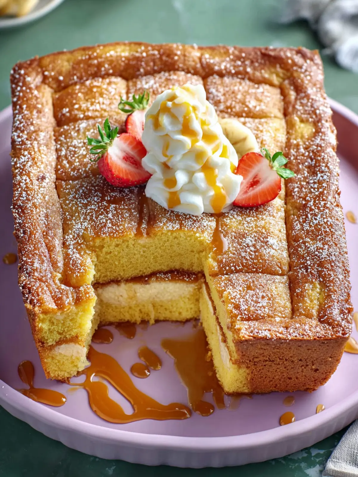 A simple glaze made from powdered sugar and milk can elevate the cake’s appearance and sweetness. Just mix them until smooth and drizzle over the top. This adds a shiny finish that makes an otherwise “ugly” cake look irresistible.