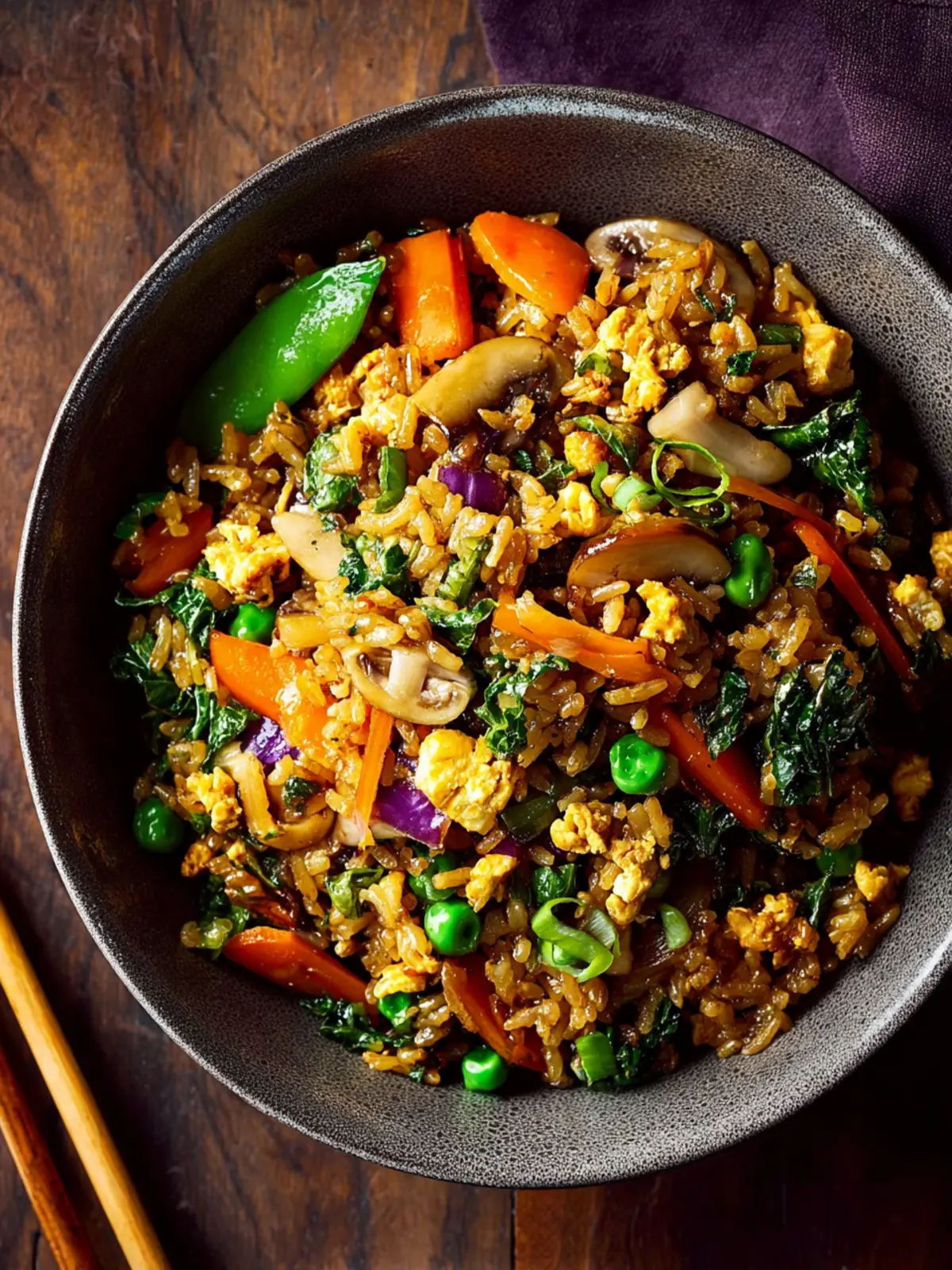 A delicious and vibrant vegetable fried rice recipe featuring tofu, colorful veggies, and bold flavors.